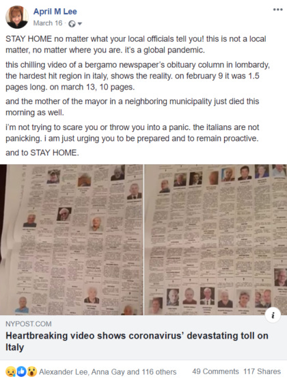 we need to unite in this moment (in spirit, keeping social distancing in mind) and each do our part to minimize the drastic effects as much as possible.