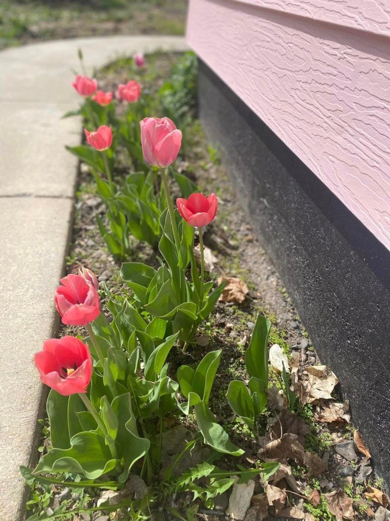 the optimistic tulipapril m leeMay 03, 2023Shareit's been a wild and wacky entrancelate snowfalls cool temperatures even a broken wristbut spring has finally sprung at my north idaho haventhe tulips at the pink house bringing a drop of loveliness and a promise of hope with each bloom tweet